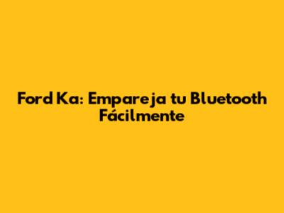 Ford Ka: Empareja Tu Bluetooth Fácilmente