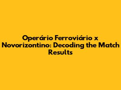 Operário Ferroviário X Novorizontino: Head-to-Head & Match Analysis