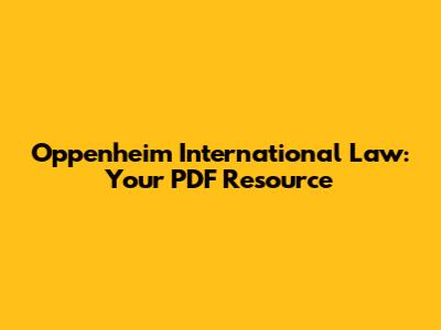 Oppenheim International Law: Your PDF Resource