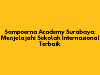 Sampoerna Academy Surabaya: Sekolah Unggulan Di Kota Pahlawan