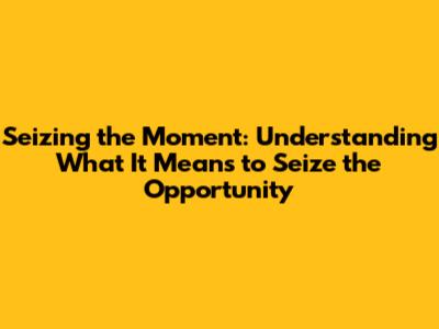 Seizing The Moment: What Does It Really Mean?